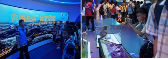 【海洋探秘】 午后,海洋学院李老师化身"海底向导",在海洋科教馆内开启奇幻旅程。孩子们不仅了解到了丰富的海洋知识,还体验到了互动式、沉浸式等AR高科技设备。这些设备让同学们直观地感受到了“海底种珊瑚”和“深海勇士号”深潜的奥妙,仿佛置身于海底世界。这种沉浸式的体验方式,让同学们对海洋科学有了更加深入的了解和认识。