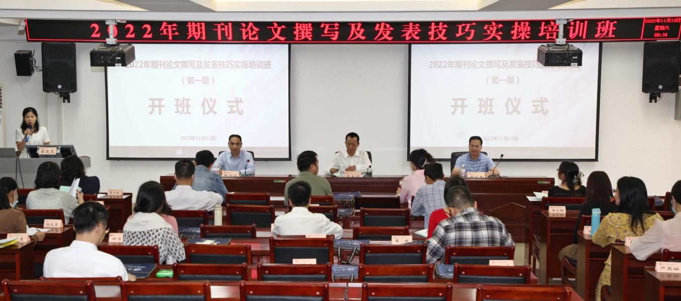 为了提升高校教职员工的论文写作水平,由广西大学继续教育学院举办的“期刊论文撰写及发表技巧实操培训班(第一期)”于2022年11月12日正式开班。来自南宁职业技术学院学工系统的30名学员参加专题培训班。广西大学继续教育学院苏兆成院长在开班仪式上致辞,许成才副教授做课程设计思路介绍,彭剑波副教授做论文写作实操说明。开班仪式后,广西大学教授曾艳华就《论文选题与引言撰写实操》进行专题培训。