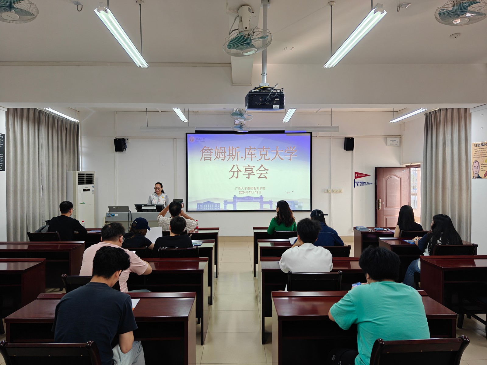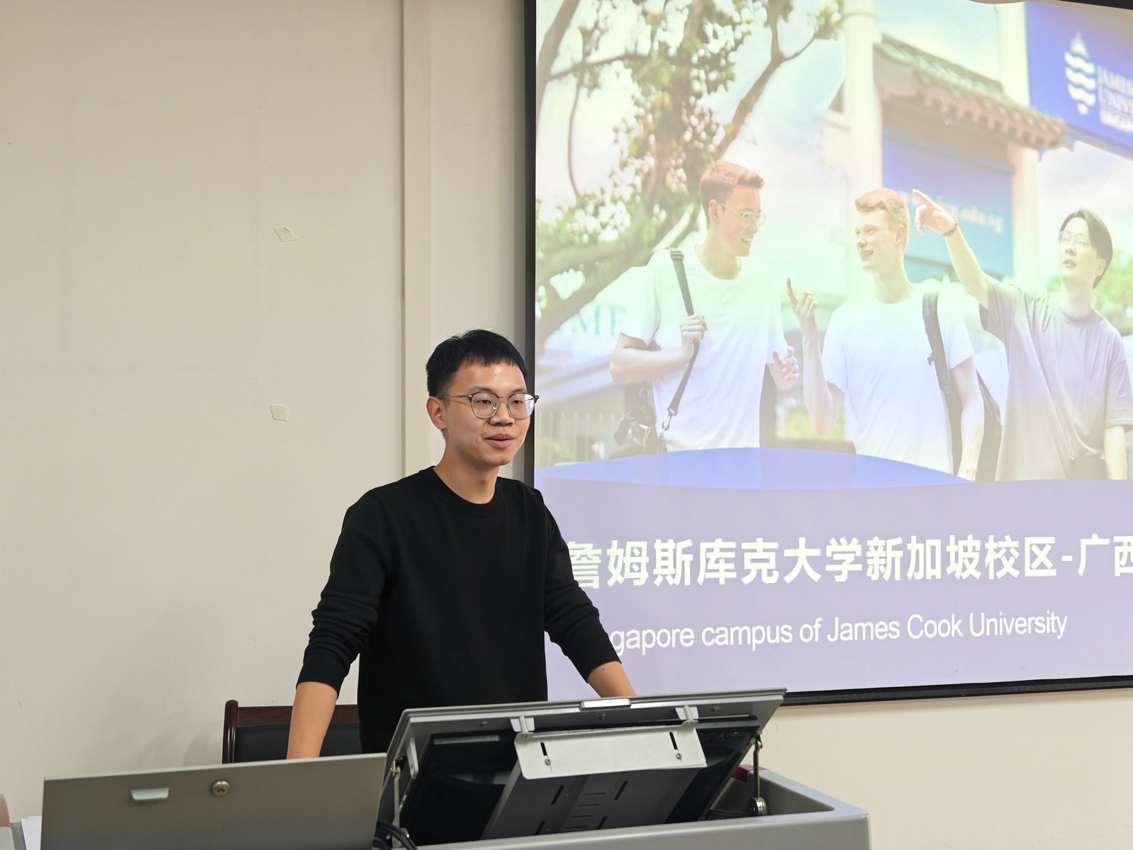 为加强学生留学指导和服务工作,我院于11月12日下午举办詹姆斯•库克大学留学经验分享会。学院副院长谭鸿禹出席会议,会议由韦红兰老师主持,詹姆斯•库克大学新加坡校区华南区主管刘寅康主讲。