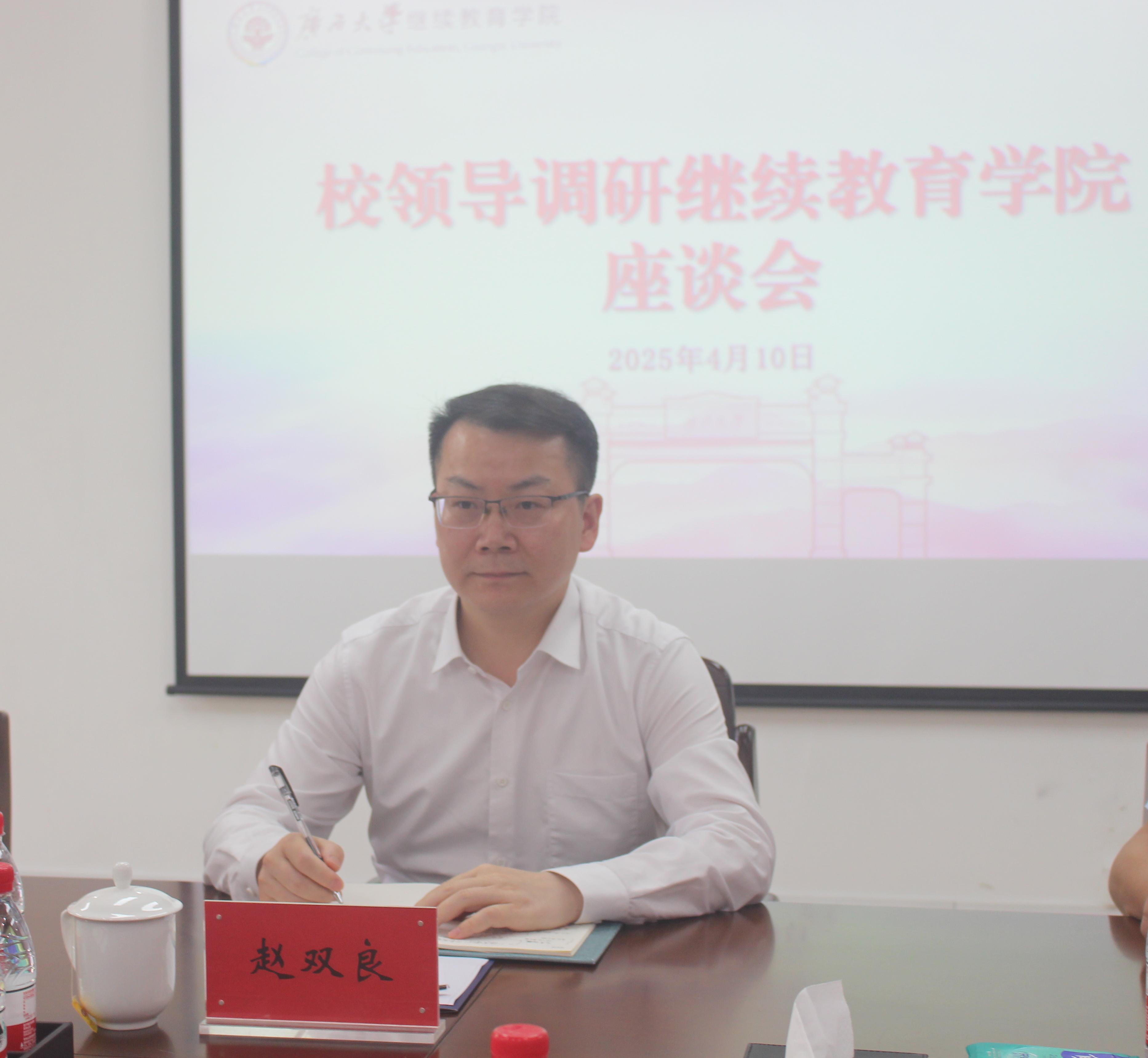 在听取学院工作汇报后,赵双良副校长对学院下一步发展作出指示。他指出,继续教育学院要提高认识,加强对继续教育的发展定位和运行规律的理解;要改进工作作风,激活队伍潜力,层层压实目标任务,全方位服务好学校中心发展任务;要创新激励机制,紧跟市场脉搏,开拓进取,树立品牌意识,努力做好非学历培训工作。