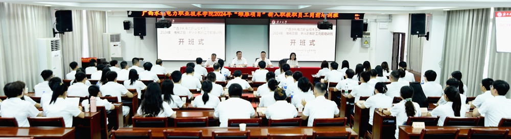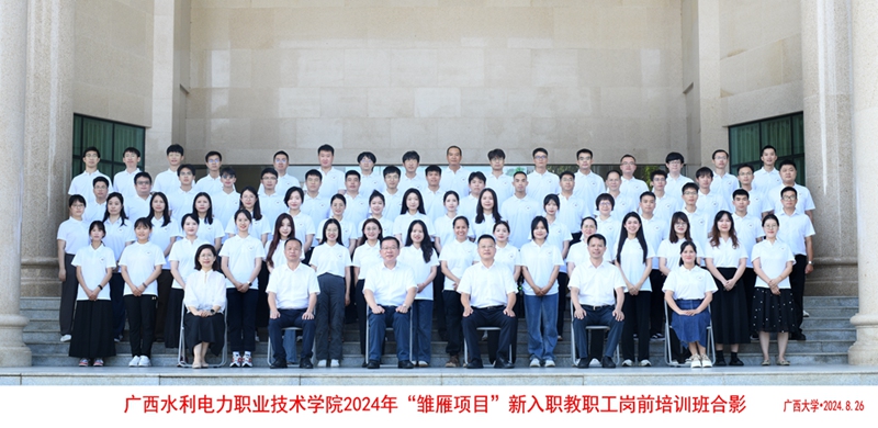8月26日,广西水利电力职业技术学院2024年度“雏雁项目”新入职教职工岗前培训班在我院开班。广西大学党委常委、副校长夏国恩出席开班式并致辞,广西水利电力职业技术学院校长李林出席开班式并作动员讲话,广西水利电力职业技术学院党委副书记侯宗毅主持开班式。