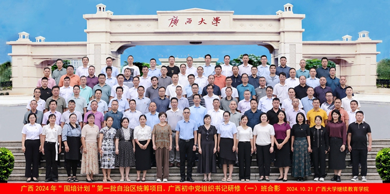 本次培训班由广西壮族自治区教师培训中心主办,广西大学继续教育学院承办,为期12天,来自全区14个市农村区域初中党组织书记共计100人参加本次培训。