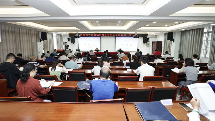 5月26日,河池税务系统法制财务督审业务培训班(第一期)在我院开班。国家税务总局河池市税务局党委委员、副局长韦立周出席开班式并作动员讲话,我院副院长曾海艳出席开班式并致辞。