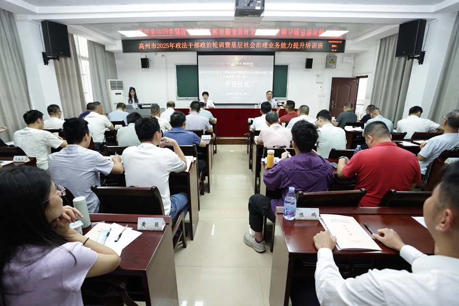 5月27日,高州市2025年政法干部政治轮训暨基层社会治理业务能力提升培训班(第1期)在我院开班。中共高州市委常委、政法委书记张燕出席开班式并作动员讲话,我院副院长徐华出席开班式并致辞。