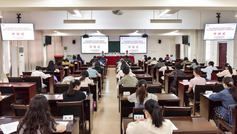 2025年5月27日,自治区药监局2025年党务干部强党性暨深入贯彻中央八项规定精神学习教育培训班在我校开班。自治区药监局党组成员、副局长、机关党委书记韦广辉,广西大学继续教育学院院长闭富春出席开班式并讲话,自治区药监局机关党委专职副书记文杰主持开班式。