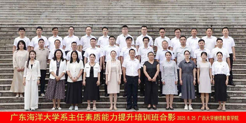 2025年8月25日,广东海洋大学系主任素质能力提升培训班在我校开班。广东海洋大学组织部部长曾庆新,广西大学继续教育学院副院长曾海艳出席开班式并讲话,广东海洋大学组织部正处级组织员兼副部长曾令梅主持开班式。