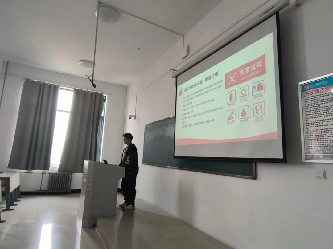 为培养学生的环保意识,进一步培养学生的垃圾分类意识,形成良好的校园新风尚,使每一位同学都能学习垃圾分类的知识,增强对垃圾分类的意识。于3月22日中午一点ok138cn太阳集团古天乐青年志愿者协会在行方楼323教室举办了“垃圾分类知识普及”活动,由文体部部长陶永政主持,建工青协全体成员参加。